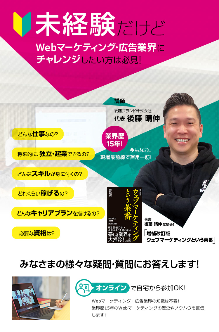また、現在Webマーケティング・広告業界にお勤めの方へは、収入・キャリアアップ、
